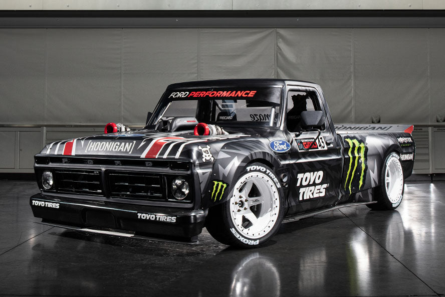 The award winning Hoonitruck was created for GymkhanaTEN, partially out of Block’s general love for trucks, and also as a a tribute to his late father who had the exact same base truck back in the day. While on display with Toyo Tires at the 2019 Tokyo Auto Salon, the Ford F-150 Hoonitruck won the TAS best “dressed” truck/SUV award!