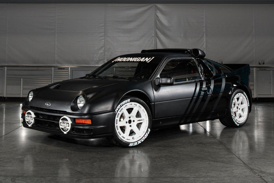 Originally built to compete in the Group B era of the World Rally Championship, Block's Ford RS200 is one of 200 units that were required to be built to meet homologation rules. Block's car features an Evolution variant of the 4-cylinder turbo motor, custom tuned to make 700+ horsepower. It also features a custom, gloss black paint job with matte black vinyl laid on top, upgraded interior, custom KW coilover suspension, fifteen52 wheels and Toyo Tires.